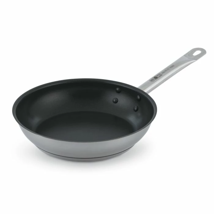 Use this Optio 9½ Inch Fry Pan on any type of oven. The aluminum clad bottom will give you quick even heating. The DuPont non‐stick surface will give you quick release of food and an easy clean up.